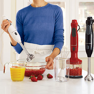 KitchenAid Immersion Blender: This is a great tool. You can blend right in the soup pot so you don't need to transfer hot liquids to your blender. It comes with a mini food processor which is great for making things like hummus. I use this tool a lot and it small for easy storage. It's available everywhere and on sale at Chefs Catalog, Item# 98456 for $99.00